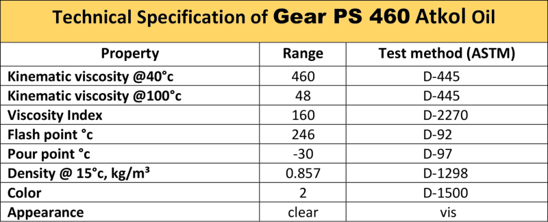 روغن دنده ATKOL PS460 یک روغن دنده صنعتی تخصصی است که با روغن پایه مصنوعی (PAO) و خواص فوق العاده فشار شدید (EP) برای استفاده در گیربکس ماشین آلات صنعتی مختلف ساخته شده است.